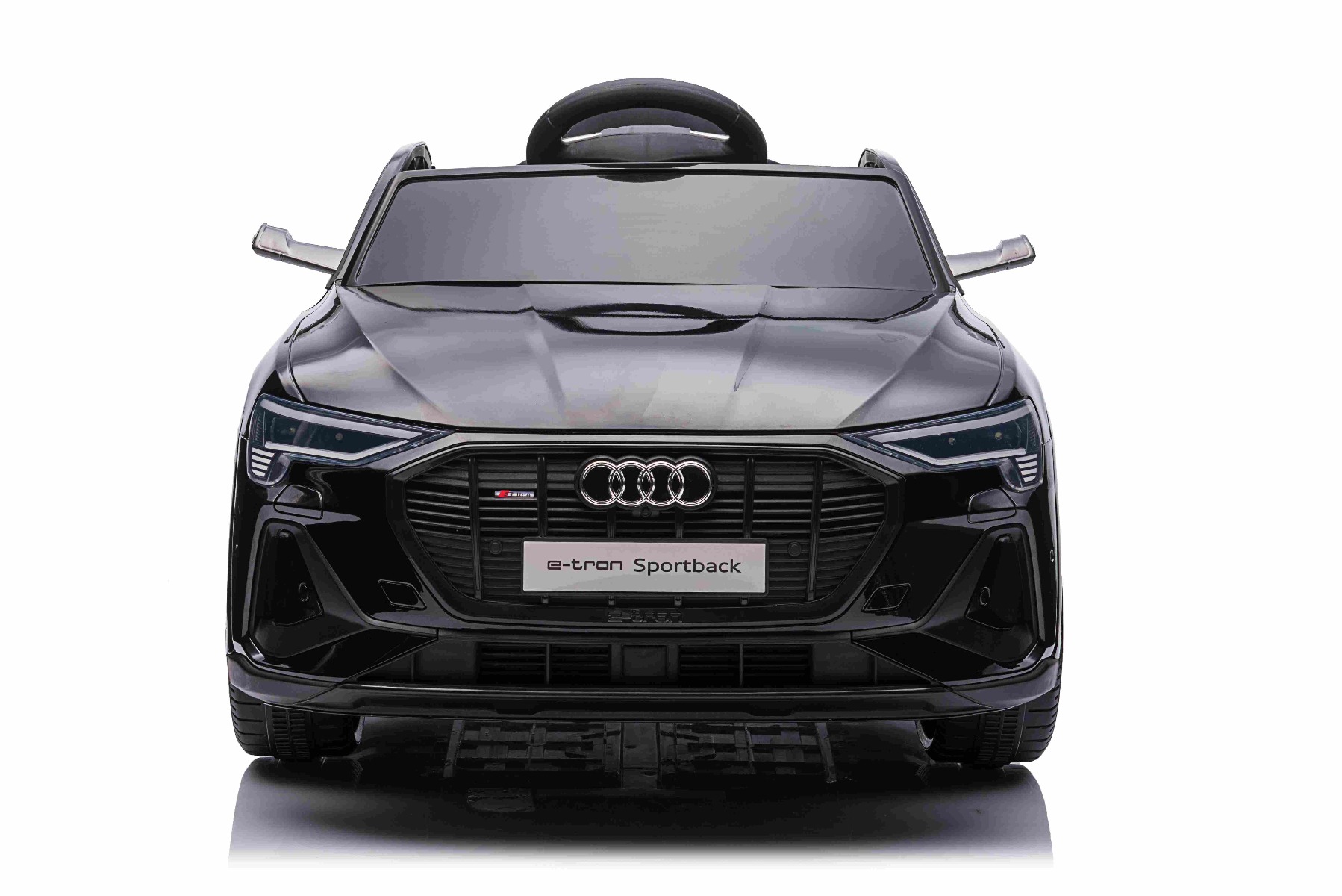 Elektrické autíčko Audi E-tron Sportback 12V, čierne, široké jednomiestne sedadlo s trojbodovým pásom, 2,4 GHz diaľkové ovládanie, USB/AUX Vstup, Odpruženie, Lítiová batéria, LED svetlá, 2 X 25W Motor, ORIGINÁL licencia