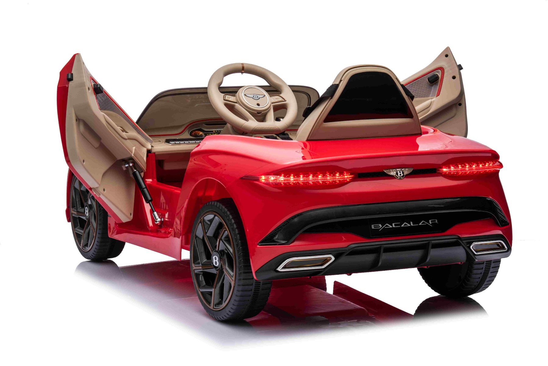 Elektrické autíčko Bentley Bacalar 12V, červené, Dvere otvárajúce sa nahor, 2.4 GHz diaľkové ovládanie, LED svetlá, USB/Aux Vstup, Odpruženie, Lítiová batéria, 2 X 25W motor, ORIGINÁL licencia