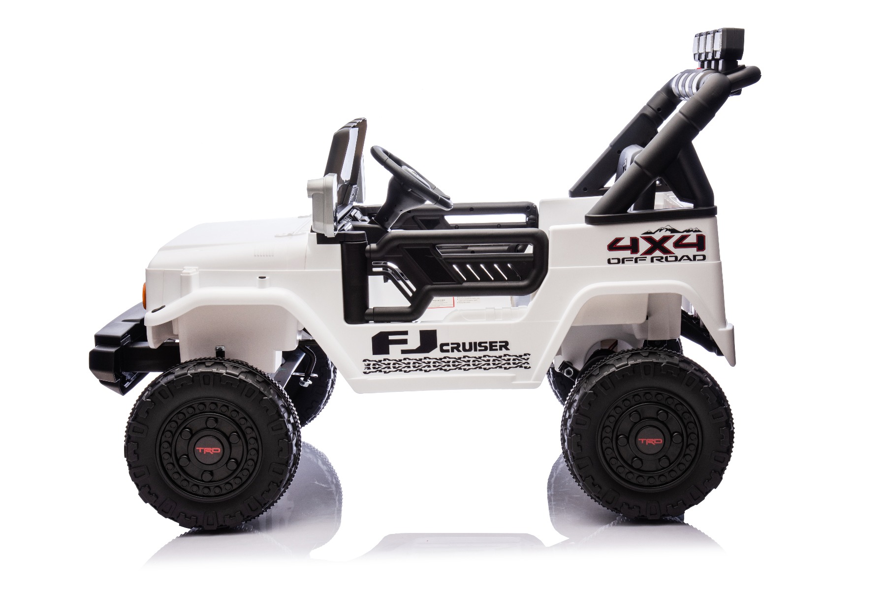 Elektrické autíčko Toyota FJ Cruiser XXL s pohonom 4x4, licencované (Dvojmiestne), biele, Prenosná lítiová batéria, Vysoký podvozok, Dve sedadlá, Odpružená zadná náprava, 2,4 GHz Diaľkový ovládač, MP3 prehrávač s Bluetoothom, LED svetlá