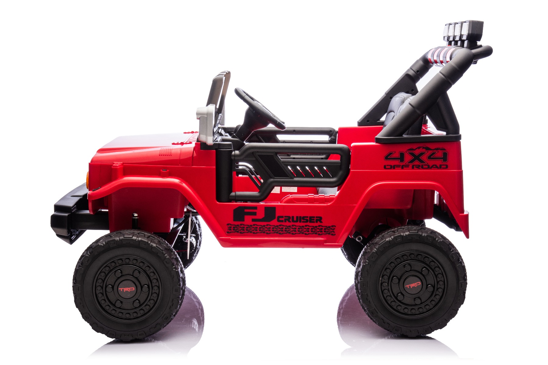 Elektrické autíčko Toyota FJ Cruiser XXL s pohonom 4x4, licencované (Dvojmiestne), červené, Prenosná lítiová batéria, Vysoký podvozok, Dve sedadlá, Odpružená zadná náprava, 2,4 GHz Diaľkový ovládač, MP3 prehrávač s Bluetoothom, LED svetlá
