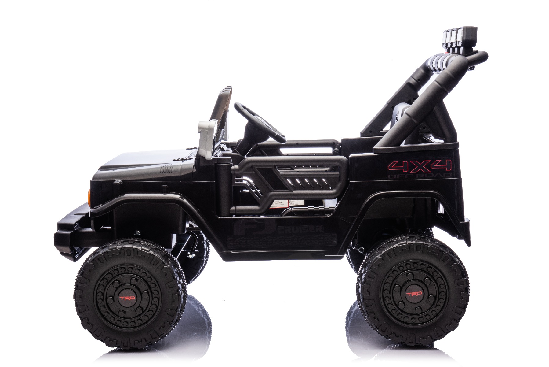 Elektrické autíčko Toyota FJ Cruiser XXL s pohonom 4x4, licencované (Dvojmiestne), čierne, Prenosná lítiová batéria, Vysoký podvozok, Dve sedadlá, Odpružená zadná náprava, 2,4 GHz Diaľkový ovládač, MP3 prehrávač s Bluetoothom, LED svetlá