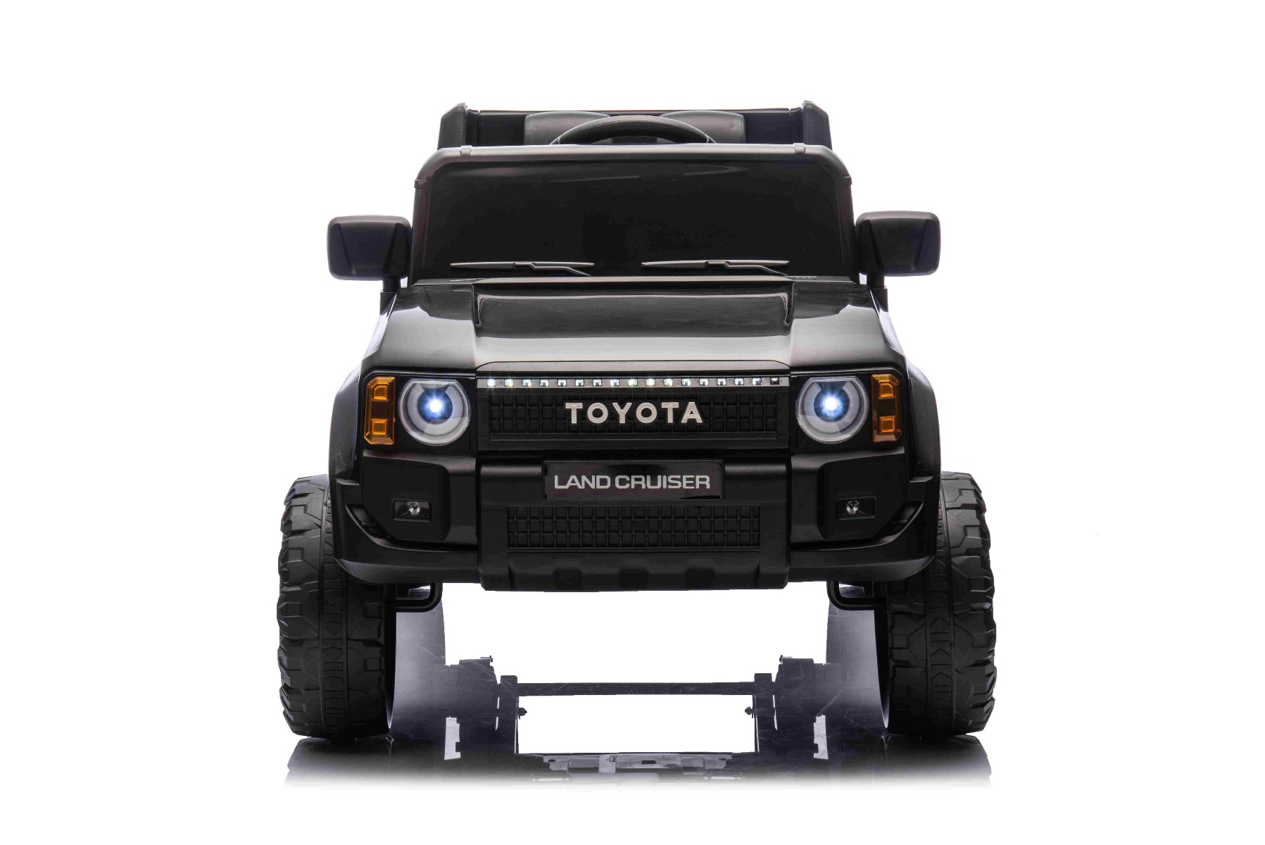 Elektrické autíčko Toyota Landcruiser 12V, čierne, široké jednomiestne sedadlo, 2,4 GHz diaľkové ovládanie, USB / AUX Vstup, Bluetooth, Odpruženie, Lítiová batéria, LED svetlá, 2 X 25W Motor, ORIGINÁL licencia