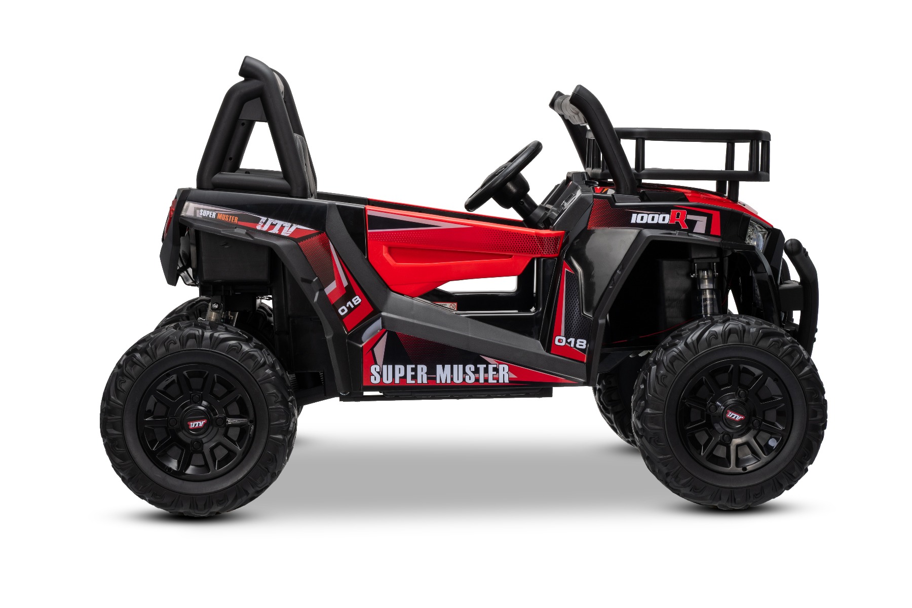 Autíčko UTV má mohutný vzhľad, otváracie dvere, 2 úložné priestory, kvalitné materiály a spracovanie. Má dve koženkové sedačky, čím je vhodný pre dve deti.