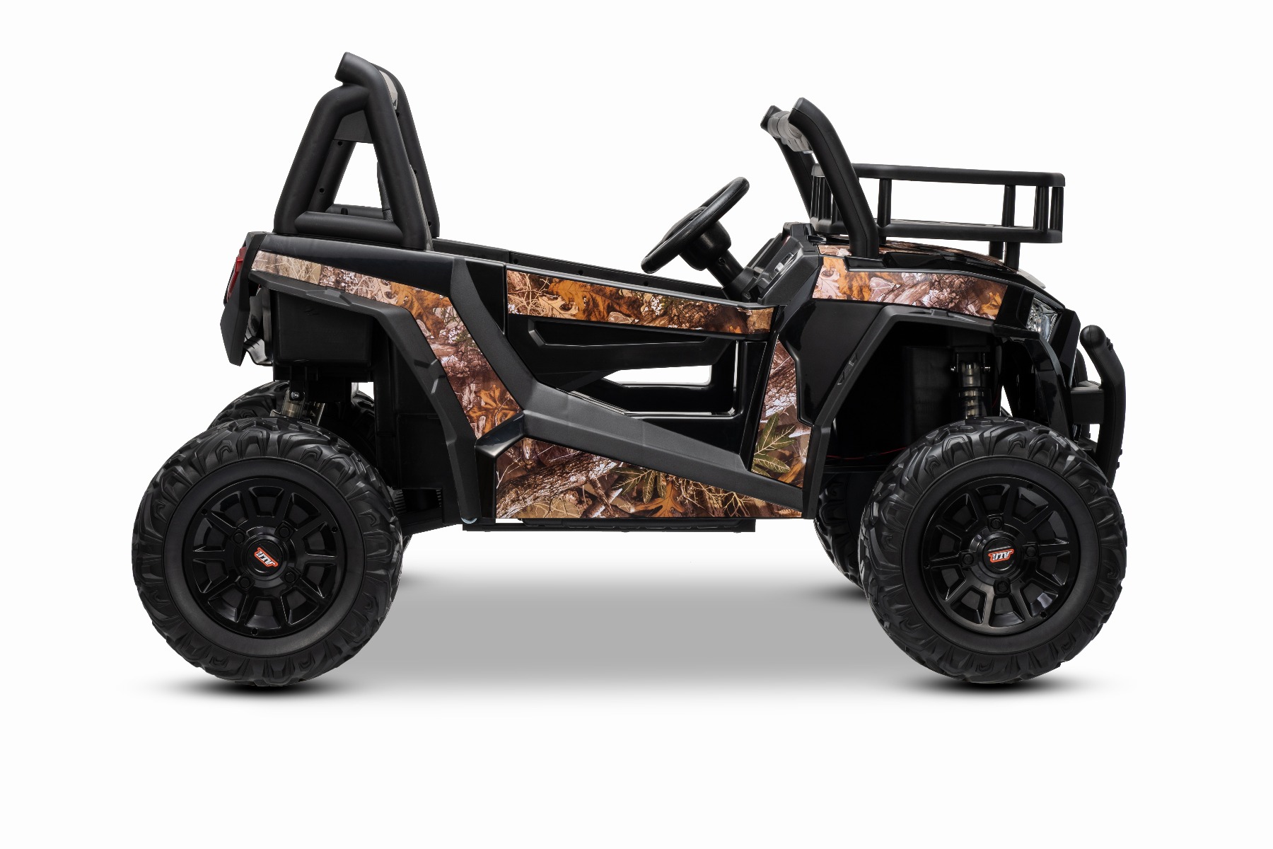 Autíčko UTV má mohutný vzhľad, otváracie dvere, 2 úložné priestory, kvalitné materiály a spracovanie. Má dve koženkové sedačky, čím je vhodný pre dve deti.