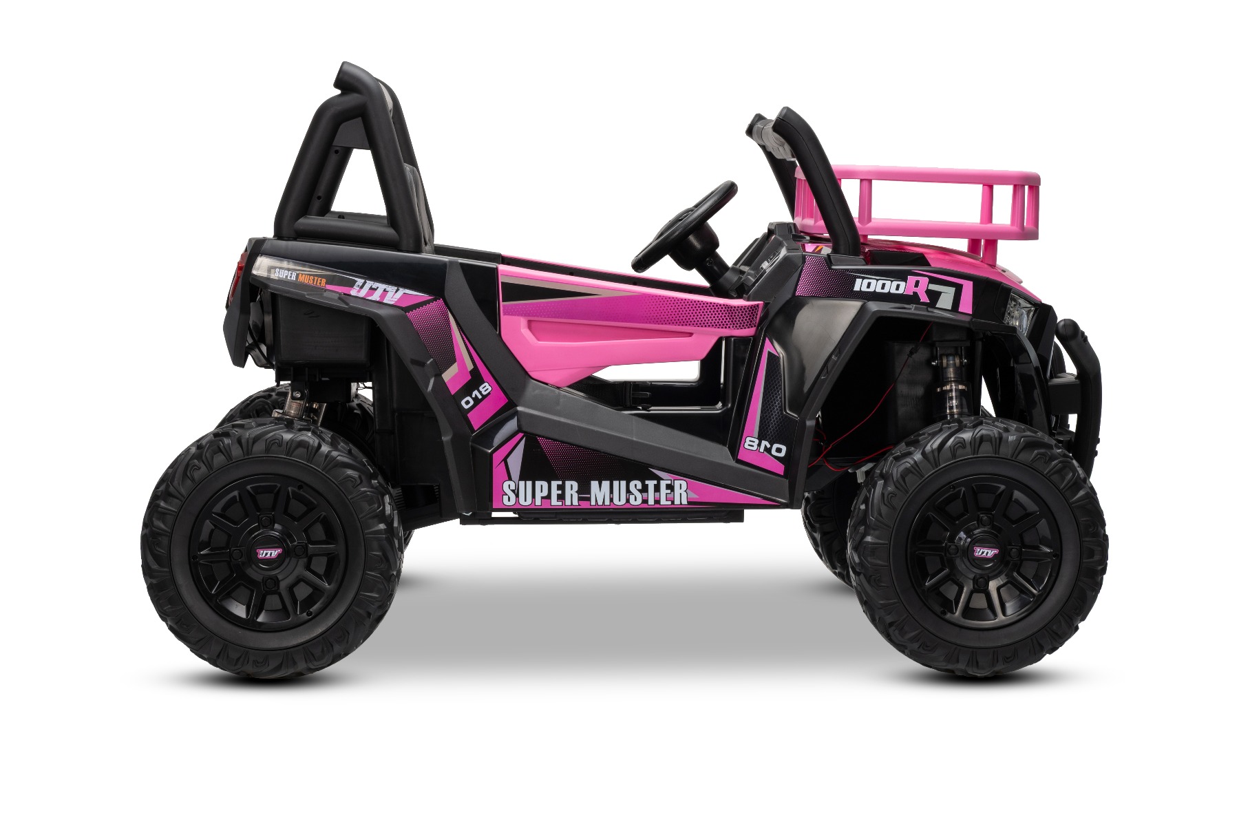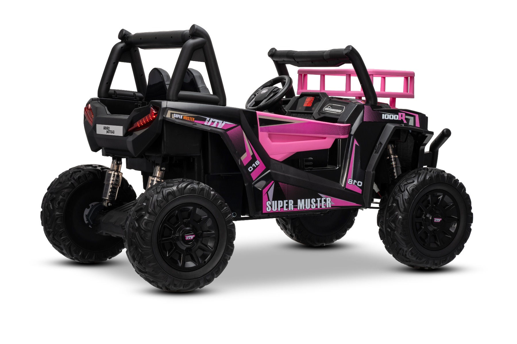 Elektrické autíčko UTV 24V, ružové, dvojmiestné, 2 x 200 W Motor, Lítiová batéria, EVA kolesá, odpružené nápravy, ektrická brzda, čalúnené sedadlo, 2,4 GHz DO, Dvojmiestne, USB, SD karta