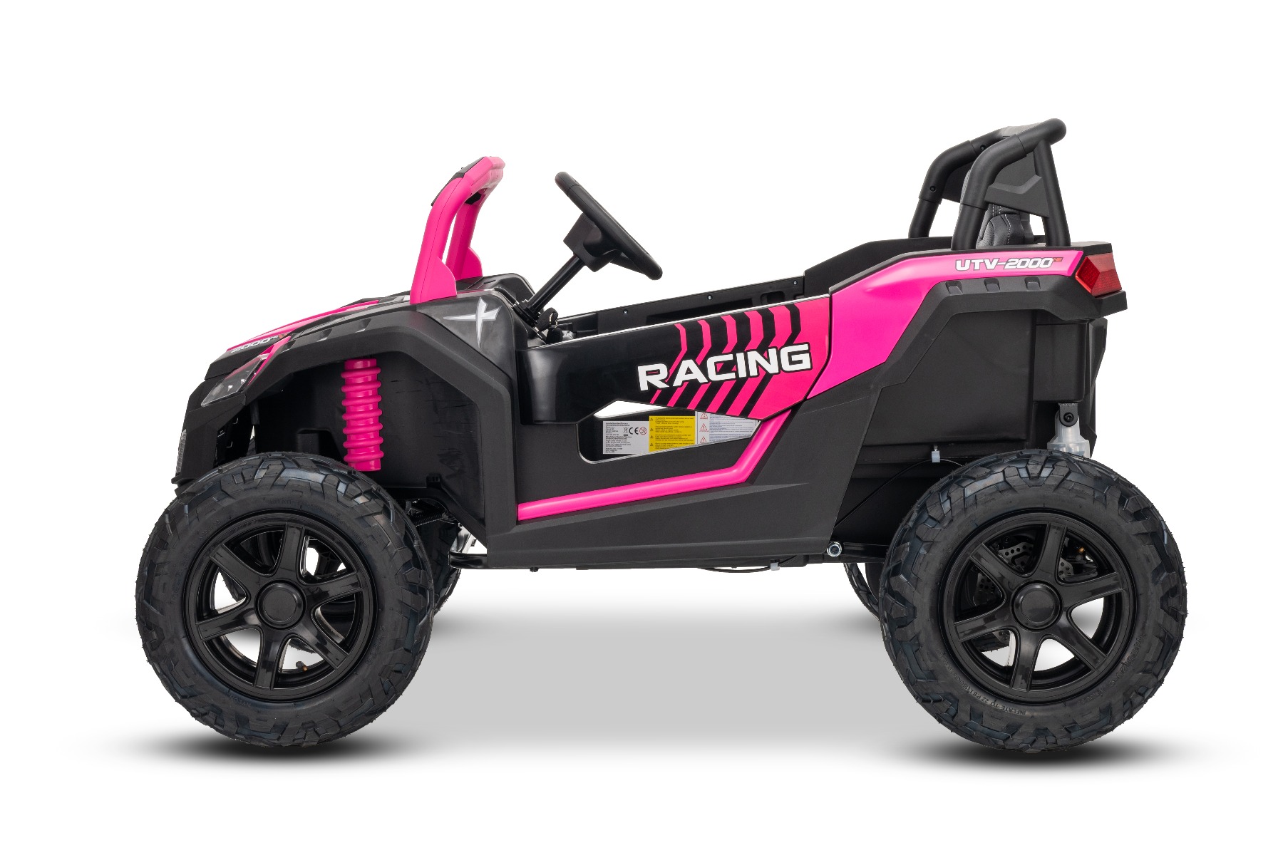 Elektrické autíčko UTV XXL 24V, ružové, dvojmiestne, Motor s diferenciálom, Nafukovacie gumené kolesá, odpružené zadné nápravy, kotúčová brzda, čalúnené sedadlo, nastaviteľný volant, bluetooth, MP3 prehrávač so vstupom USB/SD