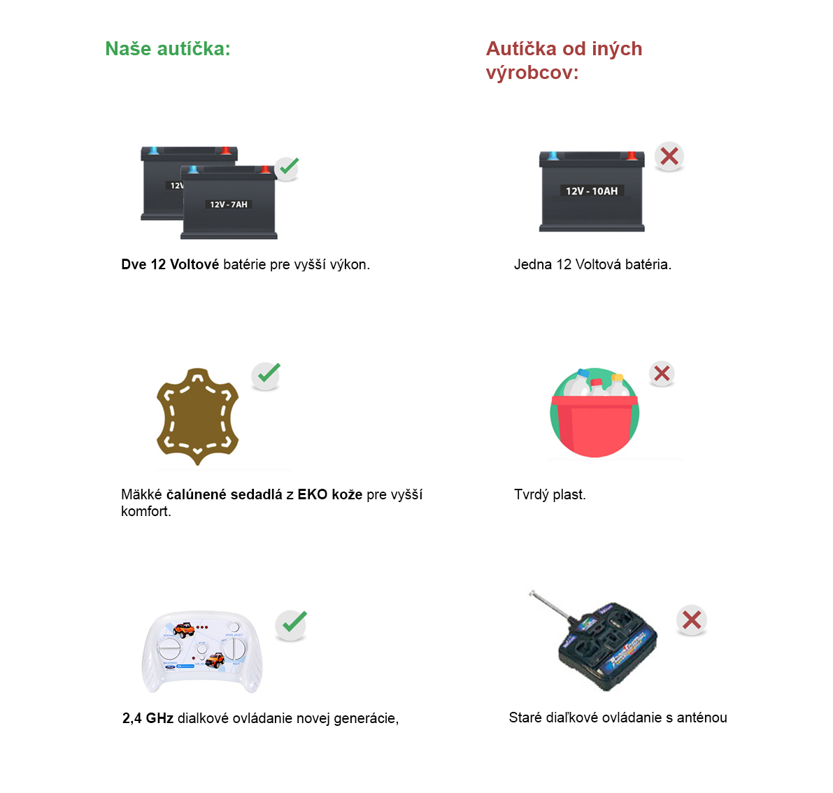 - Nové diaľkové ovládanie 2,4 GHz - bez rušenia, plnej kontroly nad vozidlom, núdzového zastavenia